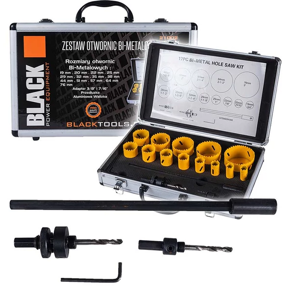 BLACK HSS BI-METAL KÖRKIVÁGÓ KÉSZLET FÉMHEZ ÉS FÁHOZ 17DB-OS - 21002