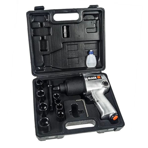 Erős, ellenálló alumínium készülékházzal rendelkezik. Üresjárati fordulatszáma 8000 fordulat/perc, és 1200 Nm forgatónyomatékot tud leadni. 8 különböző fejjel, és egyéb kiegészítőkkel érkezik, kofferben. Az 5 fokozatban állítható sebességnek és a változtatható forgásiránynak köszönhetően nincs több szitkozódós csavar.