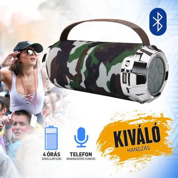 Vidd haza ezt a remek bluetooth hangfalat amivel minőségi hangzáshoz juthatsz hozzá, valamint egy beépített elemlámpát is találhatsz ami segít a sötétben is megtalálni amit keresel. Esti bulizáshoz és tóparti bulikhoz is javasolt. A szilikonpánt a hordozhatóságot teszi egyszerűvé. Telefonhívásoknál, kihangosításra is hazsnálható.