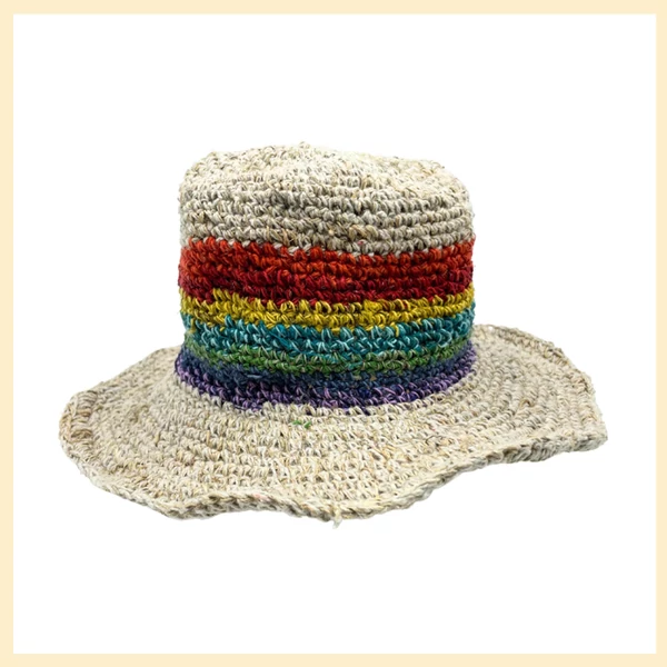 BOHO Kézzel kötött kender és pamut fesztivál kalap ZTHempH-02