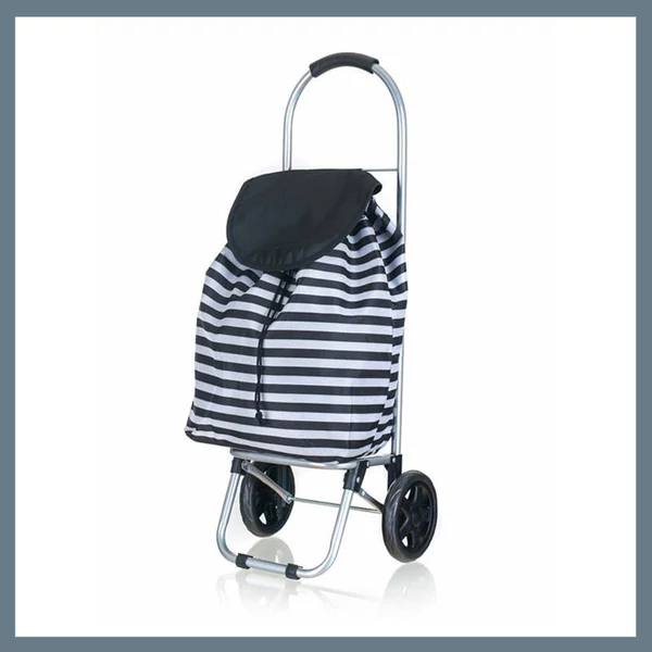 A kerekeken gurítható bevásárlótáska hasznos segítőtárs a nehezebb bevásárlások során, különösen idősek és nők számára. A táska űrtartalma 30 liter, maximális teherbírása pedig 25 kg. A textil táska könnyen levehető a fémvázas szerkezetről, valamint egyszerűen tisztítható. Az ergonomikus fogantyúval ellátott kerekes bevásárlótáska fém lerakófelülettel megerősített vázzal rendelkezik, amely stabilitást biztosít a terméknek. A műanyag kerekek lehetővé teszik a könnyű mozgást bármilyen felületen.
