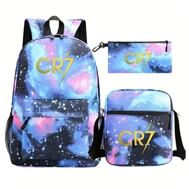 Stílusos, Cristiano Ronaldo ihlette 3 részes CR7 táskaszett iskolába, utazáshoz vagy mindennapi használatra. A szett tartalmaz egy nagy méretű hátizsákot, egy válltáskát és egy praktikus tolltartót. A sportos megjelenés, a funkcionalitás és a kényelmes kialakítás tökéletes választás fiataloknak, CR7 rajongóknak.