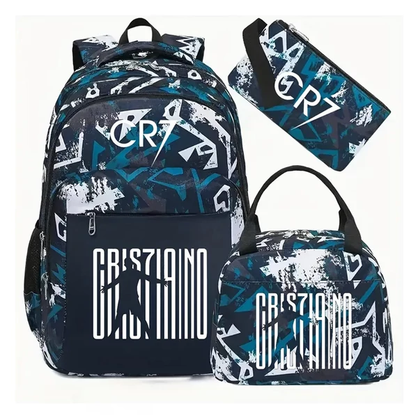 CR7 Mintás 3 részes Hátizsák Szett – Kék Fekete YR3664847