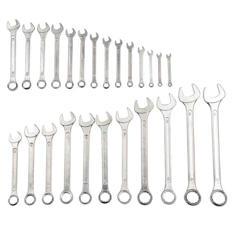 Professzionális 25 részes csillag-villáskulcs készlet 6–32 mm méretben. A kulcsok kiváló minőségű króm-vanádium (CrV) szerszámacélból készültek, polírozott felülettel a korrózió elleni védelemért és a hosszabb élettartamért.
