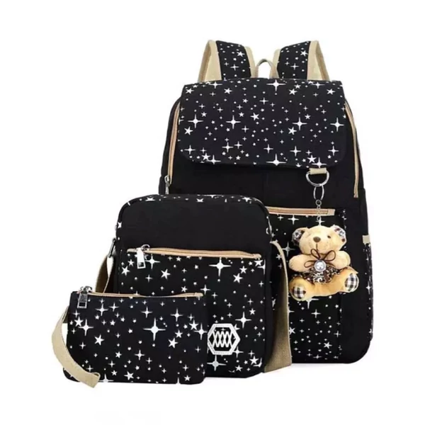 Csillagos iskolatáska szett – 3 részes, Fekete KBL-1143-01-F
