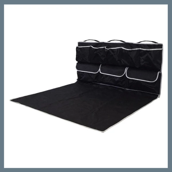 Univerzális méretű csomagtartó védőtakaró, amely ideális kutya vagy szennyezett rakomány szállításához, miközben számos praktikus zsebének köszönhetően segít rendszerezni a kisebb tárgyakat is.