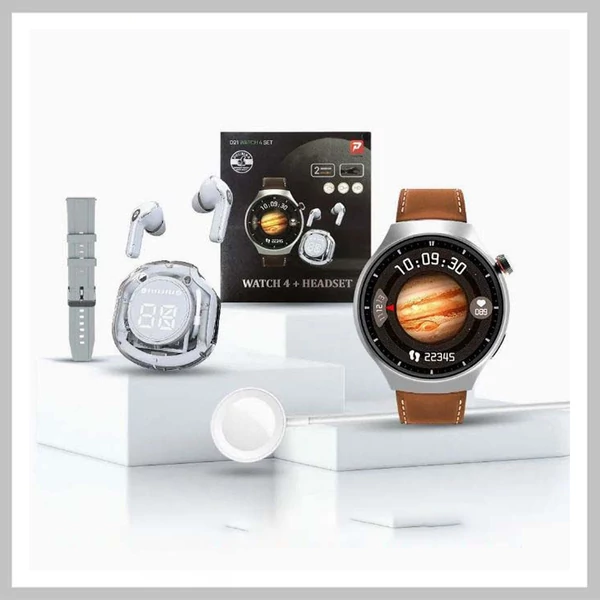 D21 okosóra ezüst készlet - Okosóra, vezeték nélküli fülhallgató, szilikon és bőr szíj holm0643