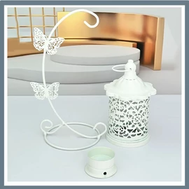 Dekoratív függesztett gyertyatartó pillangós állvánnyal – Fehér VJ322945