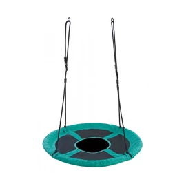 Kör alakú 90 cm átmérőjű zöld hinta, melyen ülve is lehet hintázni, de fekve is lehet ringatózni.