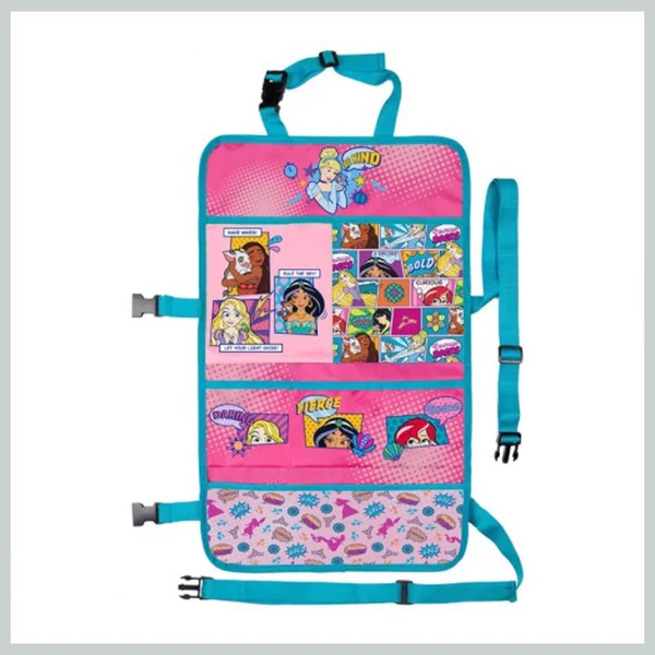 Ez a Disney Hercegnők mintás autós ülésrendező praktikus és szórakoztató megoldás a kisgyermekes utazásokhoz. Segít rendszerezni a játékokat, könyveket és egyéb apróságokat, miközben vidám dizájnjával feldobja az autó belső terét.