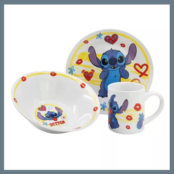 A Disney Lilo és Stitch mintás porcelán étkészlet vidám hangulatot varázsol minden étkezéshez! Strapabíró, könnyen tisztítható, és praktikus a mindennapi használatra is.