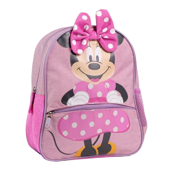 Szín: Rózsaszín, fehér pöttyökkel, Minnie egér mintával és 3D-s masnival