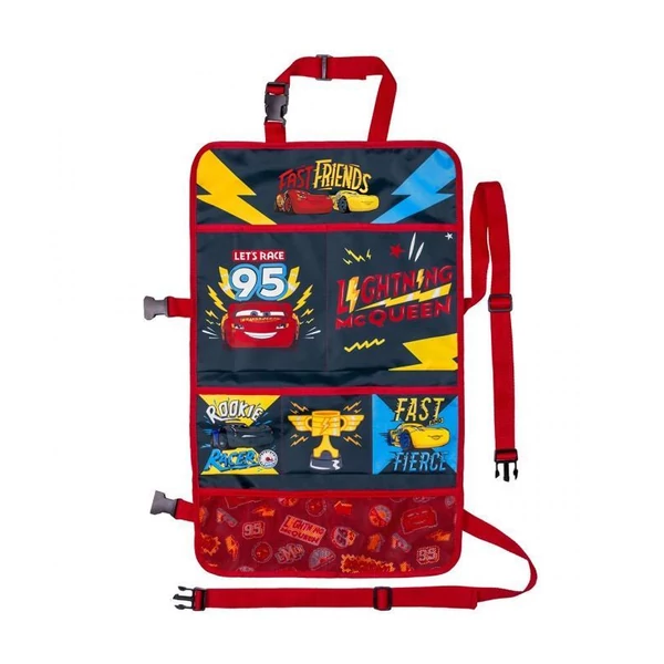 A Disney Verdák háttámlavédő praktikus megoldás az autó hátsó ülésének tisztán tartására, miközben vidám dizájnjával szórakoztató élményt nyújt a gyerekeknek. Több zsebbel ellátott tárolórész segíti a játékok, italok és apróbb holmik rendszerezését az utazás során. Villám McQueen és barátai színes mintája feldobja az autó belső terét.