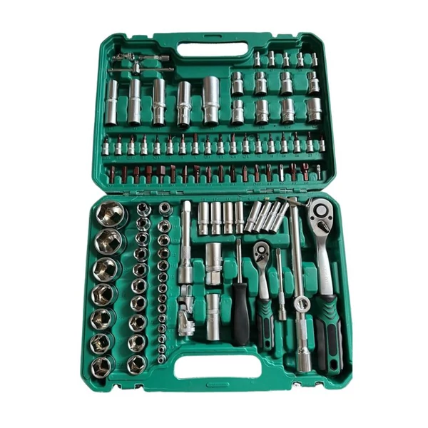 Ez a 108 részes dugókulcs és bitfej készlet sokoldalú, komplett megoldást kínál autószereléshez, gépjavításhoz és otthoni barkácsmunkákhoz. A készletben két különböző méretű racsnis hajtókar található, valamint számos dugókulcs fej, bitfej, hosszabbító és adapter, így minden feladathoz a megfelelő szerszám áll rendelkezésre.