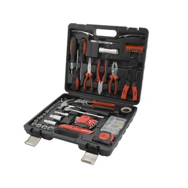 A minőségi eszközökkel és alapvető összekötő anyaggal ellátott bőrönd minden otthonban és otthoni műhelyben szükséges segítőtárs. Ez a praktikus tok mindent tartalmaz, ami az otthoni kisebb javításokhoz és módosításokhoz szükséges. A készlet tartalmazza az ergonómikus csavarhúzókat, imbuszkulcsokat, borotvapengét, a legelterjedtebb fogótípusokat, köztük elektromos, kalapácsot, 3/8"-os racsnit bitekkel, LED-es zseblámpát, csavarhúzót bitekhez, 20 bites csavarhúzóval, 5 m hosszú mérőszalaggal, szigetelő szalag és egyebek A készlet többek között egy tokkal van felszerelve, 92 darab összekötő anyaggal. Minden tartozék áttekinthetően egy 38 x 34 x 8 cm méretű műanyag hordtáskában van elhelyezve.