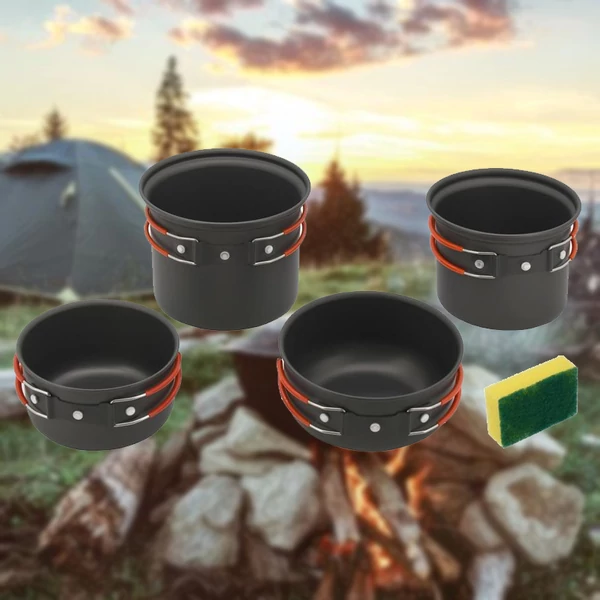 Eloxált alumíniumból készült kültéri edénykészlet.