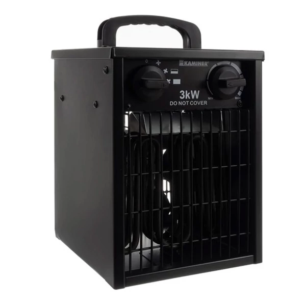 Ez a 3000 W teljesítményű elektromos fűtőventilátor gyorsan és hatékonyan felfűti a helyiséget, miközben ventilátora egyenletesen oszlatja el a meleg levegőt. Kompakt méretének és hordozható kialakításának köszönhetően ideális otthonokba, irodákba, műhelyekbe vagy garázsokba.