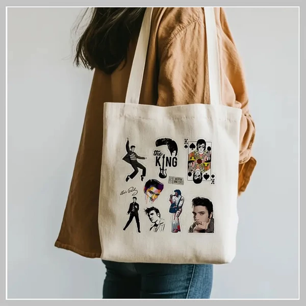 Ez az egyedi Elvis Presley mintás vászontáska tökéletes választás minden rock and roll rajongónak és zenekedvelőnek! A „The King” grafikával díszített dizájn stílusos és karakteres megjelenést biztosít, miközben a táska praktikus és környezetbarát megoldás a mindennapokra. Használhatod bevásárláshoz, tanuláshoz, utazáshoz vagy akár ajándékként is – garantáltan örömet okoz!