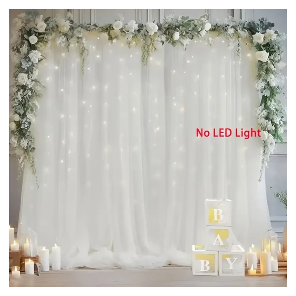 Ez az elegáns dekorációs háttér tökéletes választás esküvőkhöz, babavárókhoz, fotózásokhoz vagy bármilyen különleges eseményhez. Lágy esésű, fehér textilből áll, amely romantikus és varázslatos hangulatot teremt.