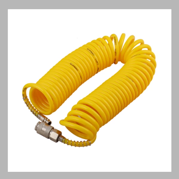 Magasnyomású spiráltömlő, rugós gyorscsatlakozókkal szerelt.