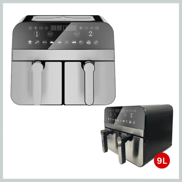A 2400 W-9L kétkosaras digitális forró levegős olajnélküli sütő egészségesebb főzési alternatívát kínál, mivel csökkenti az olajigényt, így ropogós, ízletes ételeket fogyaszthat kevesebb zsírral. Duplakosaras kialakítása lehetővé teszi több étel egyidejű elkészítését, így gyorsabbá és kényelmesebbé téve az étkezést a nagyobb háztartások számára.