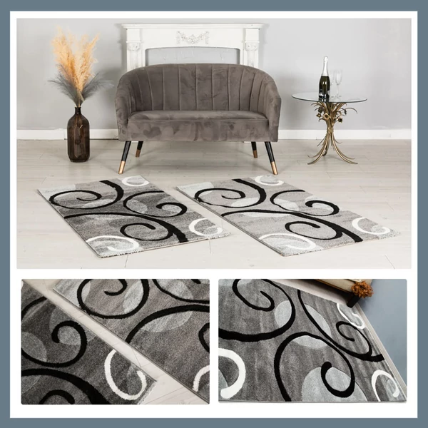 Eylül Fekete-Szürke Nonfiguratív Szőnyeg Szett 01200D-SIYAH-GRI-SZETT1
