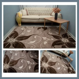 Eylül Kávé-Barna Virág Mintás Szőnyeg Szett 01203D-KAHVE-BARNA-SZETT1