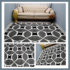 Eylül Szürke-Fekete Körkörös Mintás 160x220 Szőnyeg 01207D-SIYAH-GRI-160220