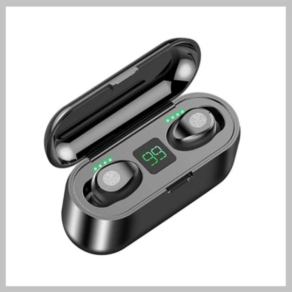 1 x TWS F9 Bluetooth fülhallgató powerbankkal fekete