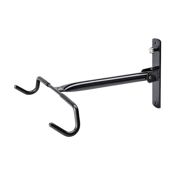 Erős, teljesen fémből készült fali kerékpártartó, amely biztonságos és helytakarékos tárolást biztosít. A tartó összecsukható karja révén a kerékpár könnyen felakasztható, használaton kívül pedig egyszerűen lehajtható, így nem foglal felesleges helyet.