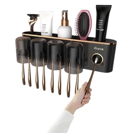 Falra szerelhető fogkefetartó fogkrém adagolóval - Nagy Fekete LH13115-6