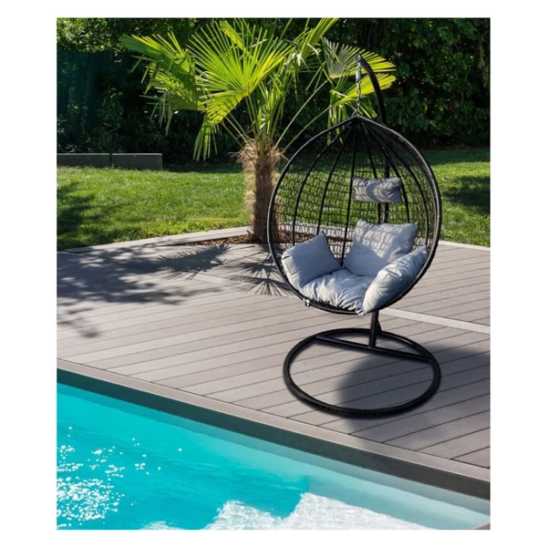 Fekete rattan függőszék állvánnyal
