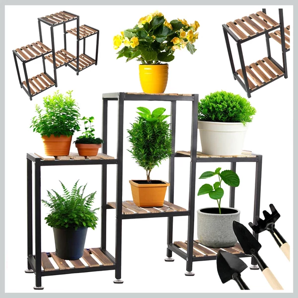 Ez a letisztult, modern stílusú virágtartó állvány tökéletes választás azok számára, akik praktikusan és ízlésesen szeretnék elrendezni cserepes növényeiket. A stabil fém váz természetes fa polcokkal párosul, míg a lépcsőzetes kialakítás kiemeli a növények szépségét, és biztosítja számukra a megfelelő fényt.