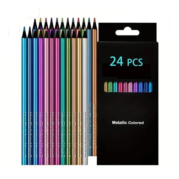 Engedd szabadjára a kreativitásod a 24 darabos fémes színes ceruzakészlettel! A gazdag, metálfényű árnyalatok különleges csillogást kölcsönöznek minden rajznak, legyen szó képeslapról, naplóról, vázlatról vagy színezőről.