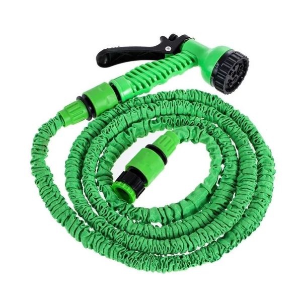 Kiváló minőségű szórófej önmagát összehúzó flexibilis locsolócsővel. Könnyen szabályozhatja a vízáram erősségét és a permetező típusát. Vízzel töltve a cső hossza akár háromszorosára is szétnyúlik. A rendkívül rugalmas locsolócső és a kiváló minőségű és rendkívül tartós szövet kombinációja biztosítja a cső tökéletes nyúlékonyságát. Ideális kerti munkákhoz, autómosáshoz, szőnyeg- és padló tisztításához.
