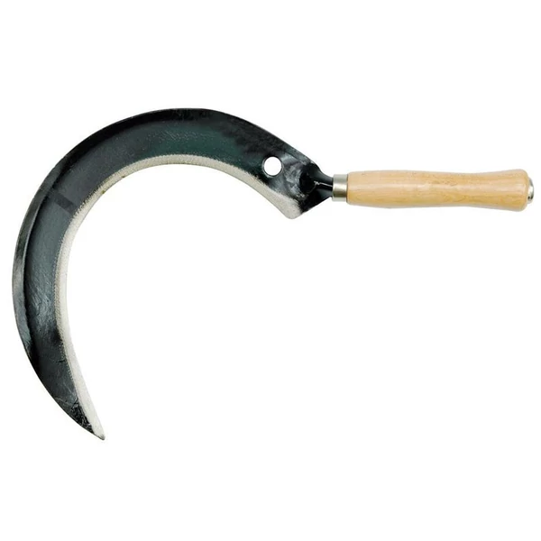 Simított félhold alakú penge, erős fa nyéllel. Kiválóan használható növények, fűfélék és kisebb ágak nyesésére, metszésére.