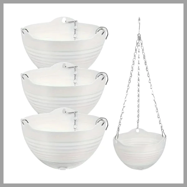 Ez a 4 darabos függő virágtartó szett ideális választás beltéri és kültéri használatra egyaránt. A fehér színű, lekerekített formájú kaspók elegáns megjelenést biztosítanak, míg a fém láncos felfüggesztés stabil és könnyen rögzíthető. A tartók alján található vízelvezető nyílás segíti a felesleges víz elfolyását, így megvédi a növényeket a túlöntözéstől.