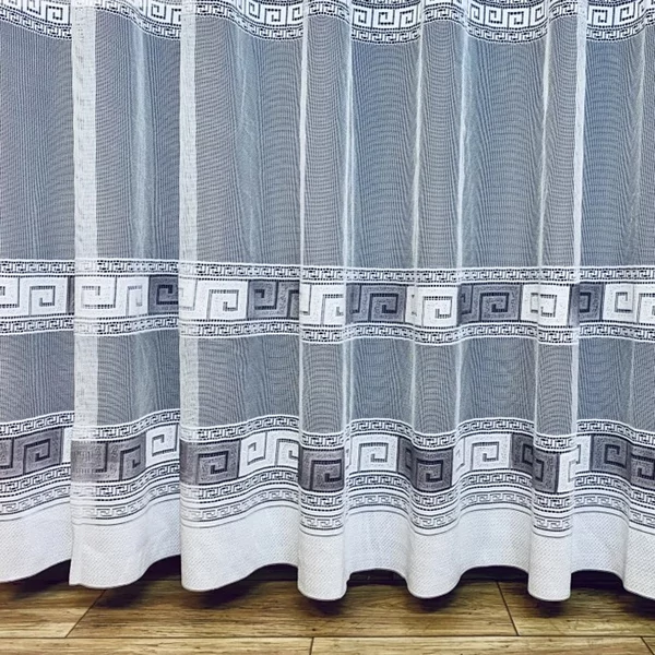 Függöny Görög minta 2, fehér alapon szürke, 300x175 cm