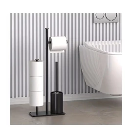 Praktikus, többfunkciós fürdőszobai kiegészítő, amely egyesíti a WC-papír tartót, a tartalék gurigák tárolóját, a WC-kefét. Modern, letisztult kialakítása bármilyen fürdőszobai enteriőrbe illeszkedik, miközben helytakarékos megoldást nyújt.