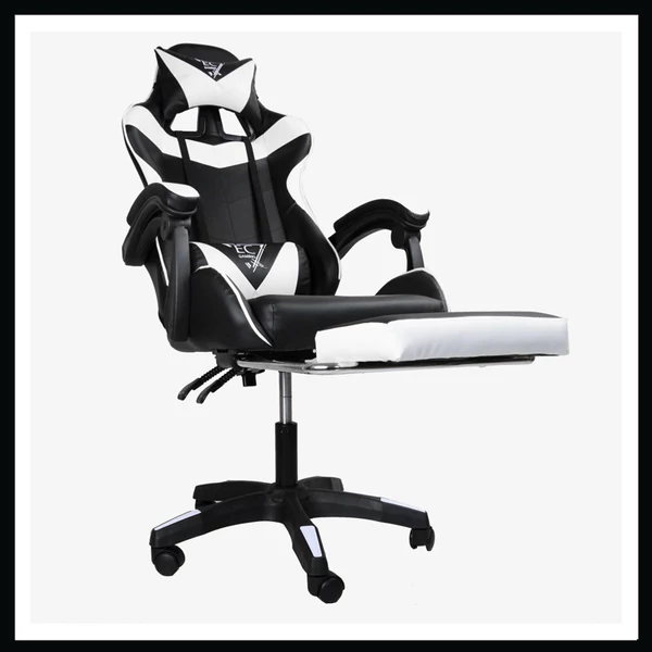 Gamer szék lábtartóval - fekete/fehér KO02B