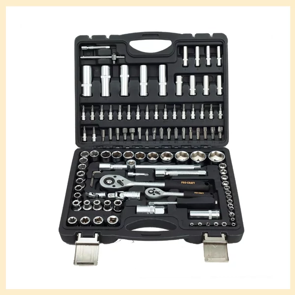 A Procraft WS-108/72 108 darabos dugókulcskészletet otthoni műhelyben és szerelők számára egyaránt használható. A dugókulcsok és racsnisok kiváló minőségű króm-vanádium acélból (CRV) készültek a korrózió elleni védelem érdekében, a kemény felület pedig tartósságot eredményez. A racsnisok 72 fogú racsnis fogaskerékkel rendelkeznek, és karral vannak ellátva. A tartós műanyag hordtáska fémzárral megkönnyíti a hosszú távú használatot és a hordozhatóságot. Az egyértelműen kategorizált szerszámok megkönnyítik és felgyorsítják a munkát. A készlet racsnis, biteket, dugókulcsokat, hatlapos kulcsokat, csavarkulcsokat, kardáncsuklót, hosszabbítókat és dugókulcsos csavarhúzót tartalmaz. Műanyag tokot tartalmaz.