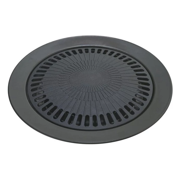 A teljes „tányér” külső átmérője 32 cm, magassága 4 cm, és a vályú a zsírcseppek összegyűjtésére szolgál. A füstképződés csökkentése érdekében ajánlott a vályút kevés vízzel feltölteni, így a zsír nem ég rá. A kiváló minőségű, zománcozott felület könnyű tisztítást biztosít.
