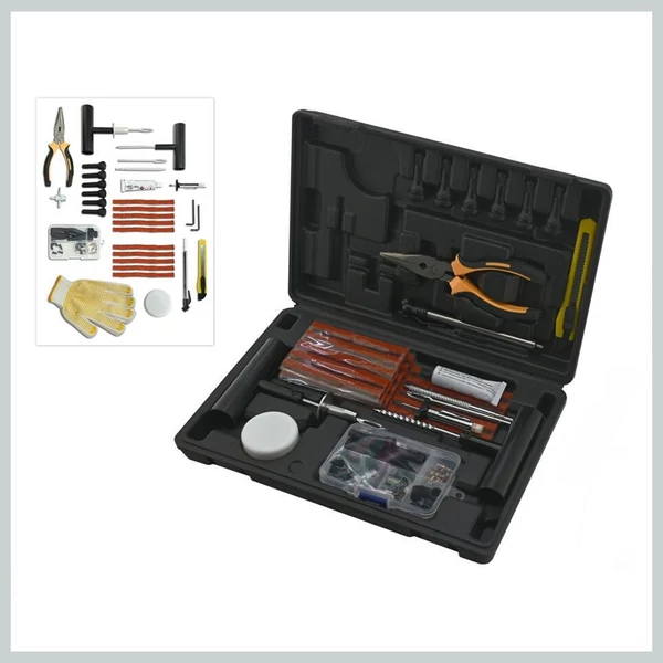 Ez a gyors gumiabroncsjavító készlet lehetővé teszi a tubeless gumiabroncsok gyors javítását anélkül, hogy eltávolítanánk a gumit a felniről. A készlet autók, motorok, ATV-k és egyéb járművek tubeless gumiabroncsaihoz használható.