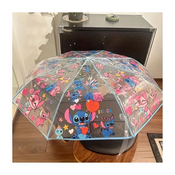 Vidám és praktikus gyerek esernyő, amely átlátszó anyagból készült, színes Stitch mintával díszítve. Könnyű, strapabíró kialakítása miatt ideális a kisebbek számára, miközben játékos megjelenésével feldobja az esős napokat.