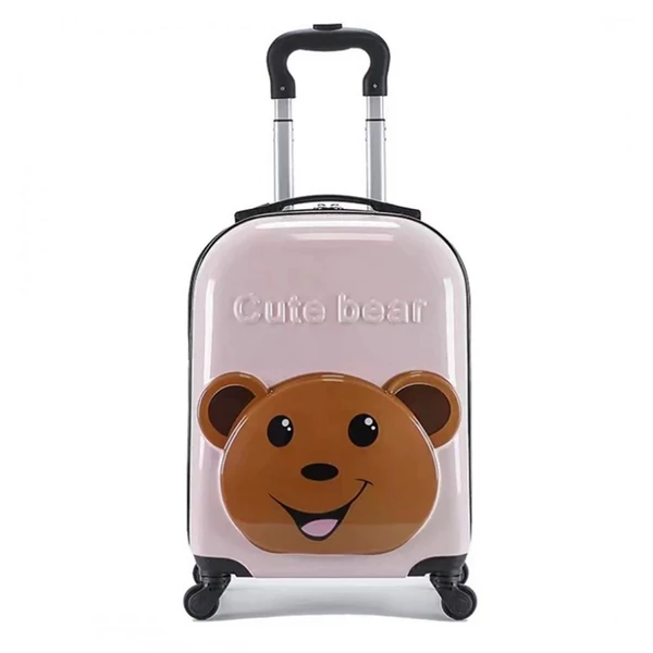 Gyerek gurulós bőrönd – Rózsaszín, mackós mintával, kódzárral WP05