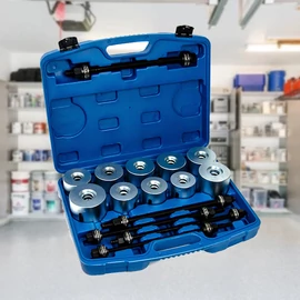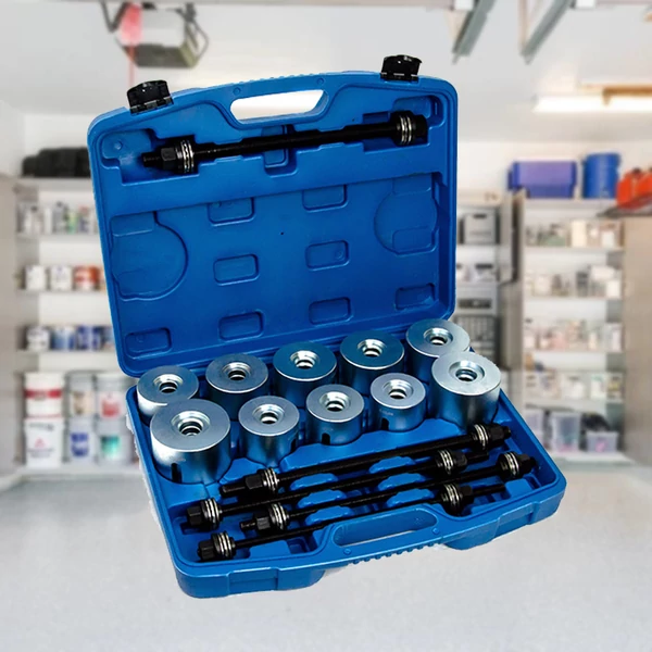 Nyomja meg és húzza ki a hüvely készlet készletet 5 húzóorsóval és anyával, amelyeket a bokrok / csapágyak és tömítések eltávolítására és felszerelésére terveztek.