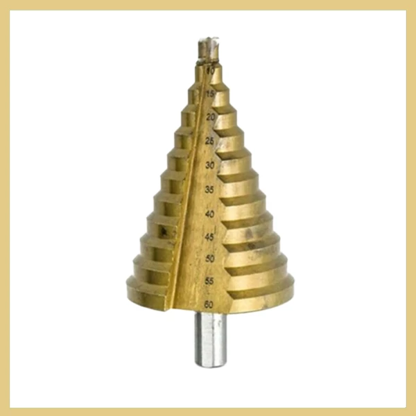- A lépésfúrók méretei: 12 lépés (6mm, 10mm, 15mm, 20mm, 25mm, 30mm, 35mm, 40mm, 45mm, 50mm, 55mm, 60mm)