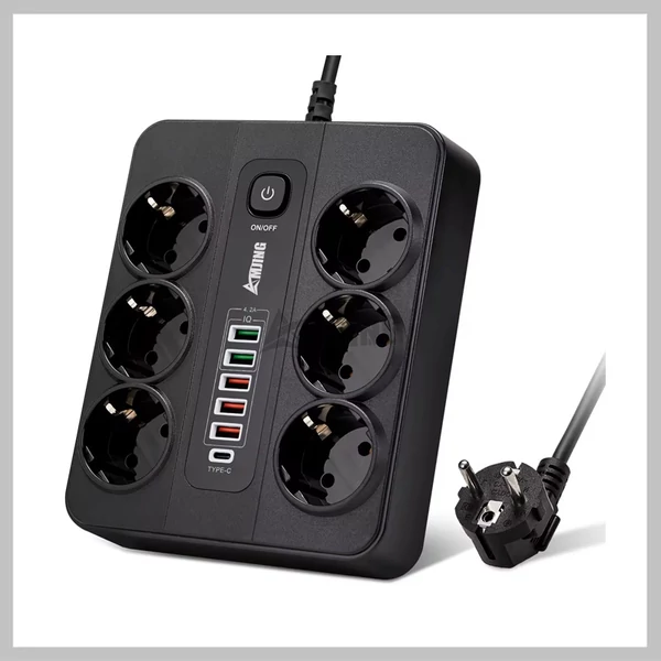 6 aljzat + 5 USB + 1 Type-C bemenet: Lehetővé teszi akár 12 eszköz egyidejű csatlakoztatását, beleértve a hagyományos elektromos eszközöket, okos telefonokat, tableteket és egyéb USB-s vagy Type-C csatlakozóval rendelkező készülékeket.