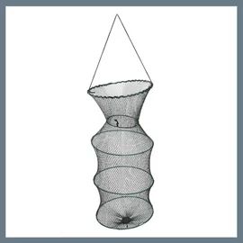 A halak tárolására szükségünk van egy megfelelő minőségű és méretű haltartóra. Az erősített szövésű klasszikus hálóanyag mely természetes szálból készül, szinte elszakíthatatlan, míg természetes anyagának köszönhetően halbarát, tehát nem dörzsöli ki a halak bőrét. Hossza 90 cm, szélessége 35 cm, melyben kényelmesen eltárolhatunk 3-4 kiló apróhalat, vagy a megengedett pár darab nemes halat. A 4 db karika megkönnyíti a halak mozgását a haltartón belül ezért tovább életben maradnak.