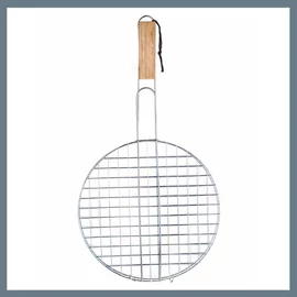 A 30 cm átmérőjű, fa nyéllel ellátott kör alakú grillrácsot használhatja a hús egyszerű grillezéséhez. A rostély krómozott acélból készült.